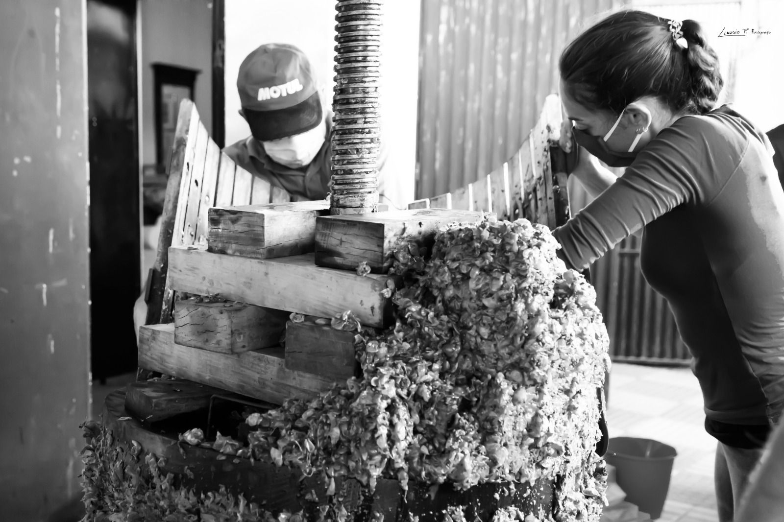 En nuestro lagar la uva, se selecciona nuevamente y se estruja mediante prensa y herramientas manuales, con un rendimiento que no llega al 50%.